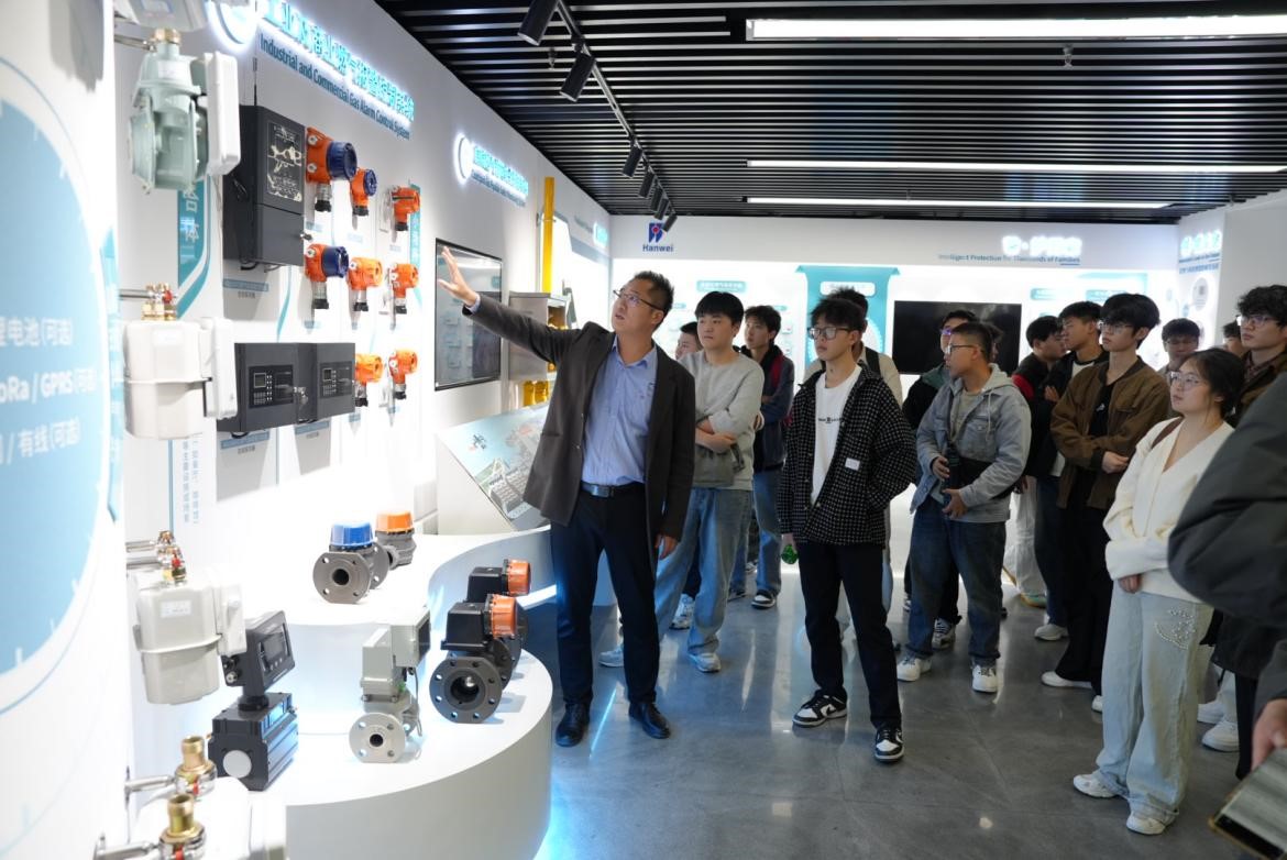 参观结束后,双方进行交流。汉威科技集团对师生们的到来表示热烈欢迎,并介绍了企业战略布局与人才需求。随着“双碳”目标推进,传感器产业迎来广阔前景,企业未来将持续扩大研发、技术等岗位招聘规模,尤其欢迎具备跨学科背景与工程实践能力的复合型人才。多位同学在交流中表示,此次活动帮助他们将课堂所学与实际产业紧密结合,明确了未来的职业方向,增强了就业信心。