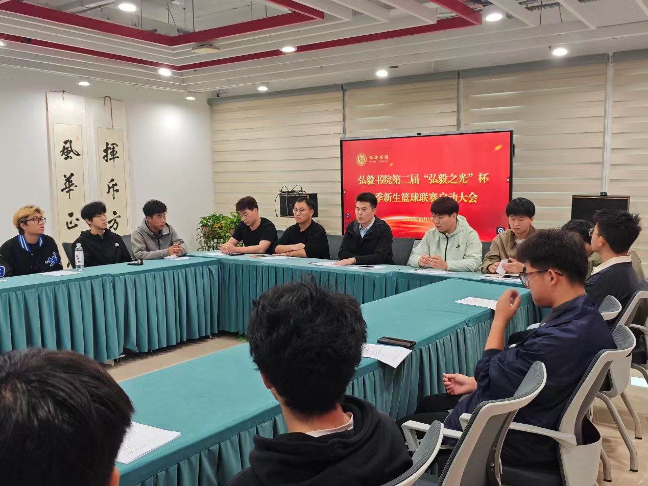 10月17日中午,弘毅书院第二届“弘毅之光”杯秋季新生篮球联赛启动大会暨抽签大会在书院三楼会议室隆重召开。书院党委副书记刘振、赛事组委会全体成员及各参赛球队领队共同出席了本次会议。