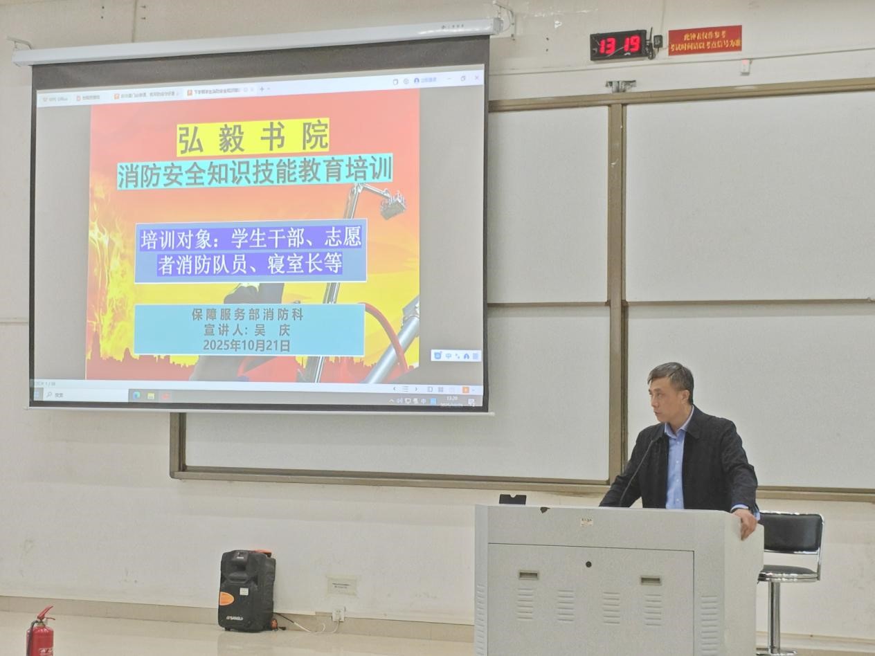 为切实提升学生安全防范意识与筑牢校园安全防线,10月21日,弘毅书院成功举办“反诈是门必修课,筑牢防线守好责”暨消防安全知识技能教育专题培训讲座。讲座特邀博学路派出所副所长李亮与保障服务部消防科吴庆主讲,各年级学生干部及志愿者消防队员参加。