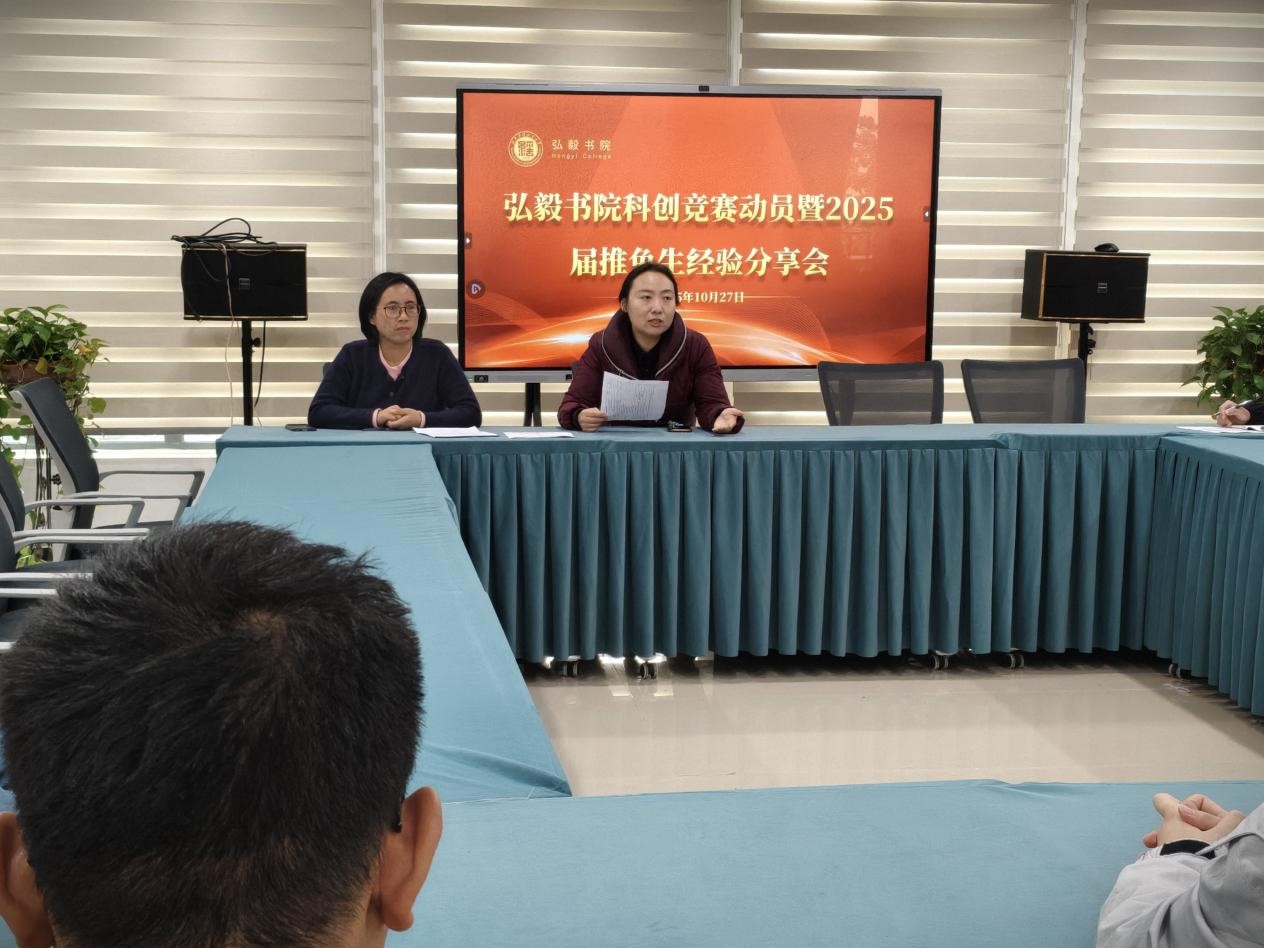 为进一步激发学生科创热情,搭建竞赛实践平台,10月27日下午,弘毅书院于三楼开展科创竞赛动员暨2025届推免生经验分享会。书院党委副书记郭粹出席会议,科创部负责老师张彩霞及2025届推免生参加会议。会议由张彩霞主持。