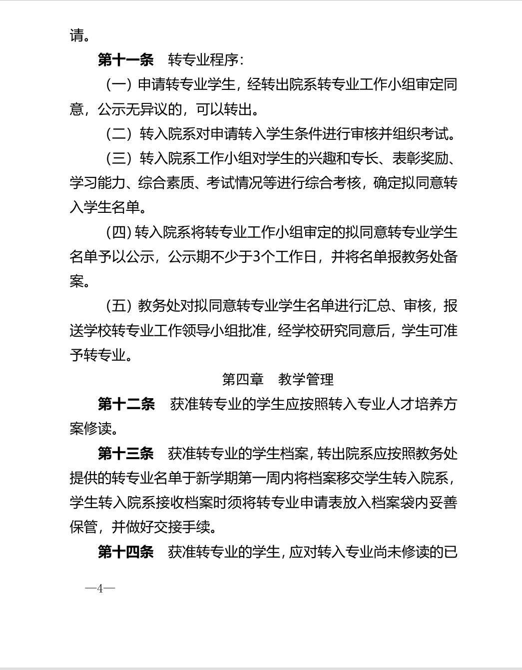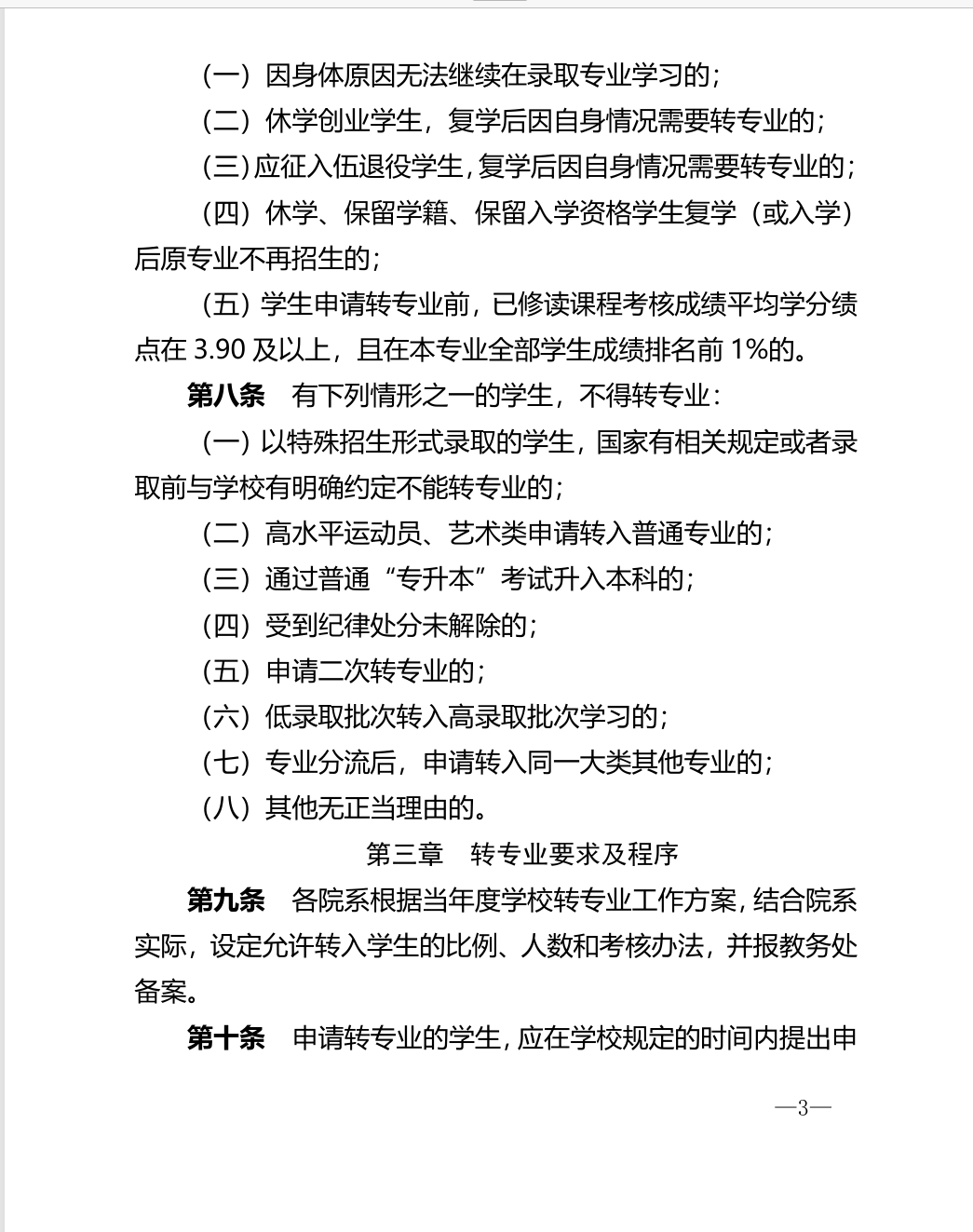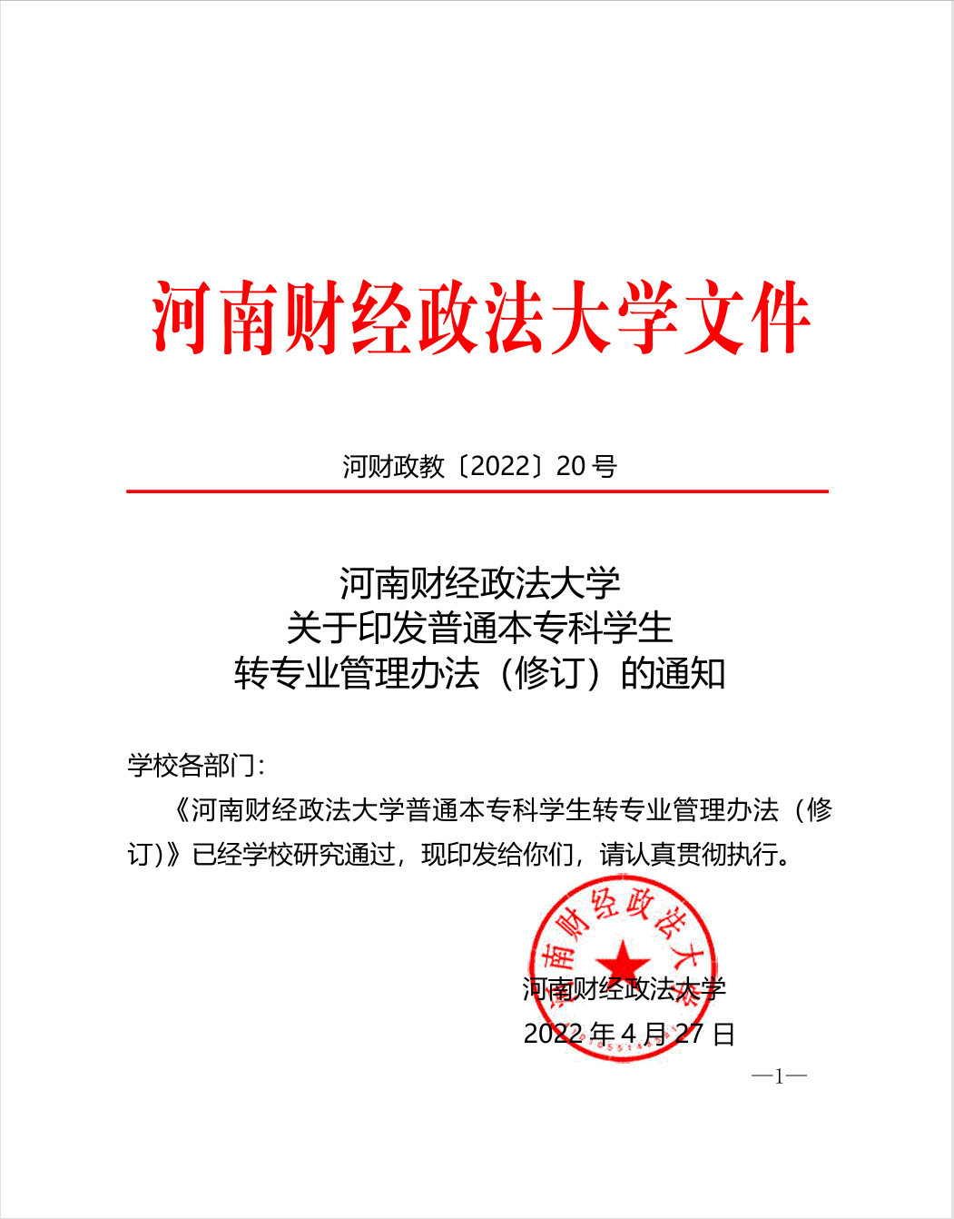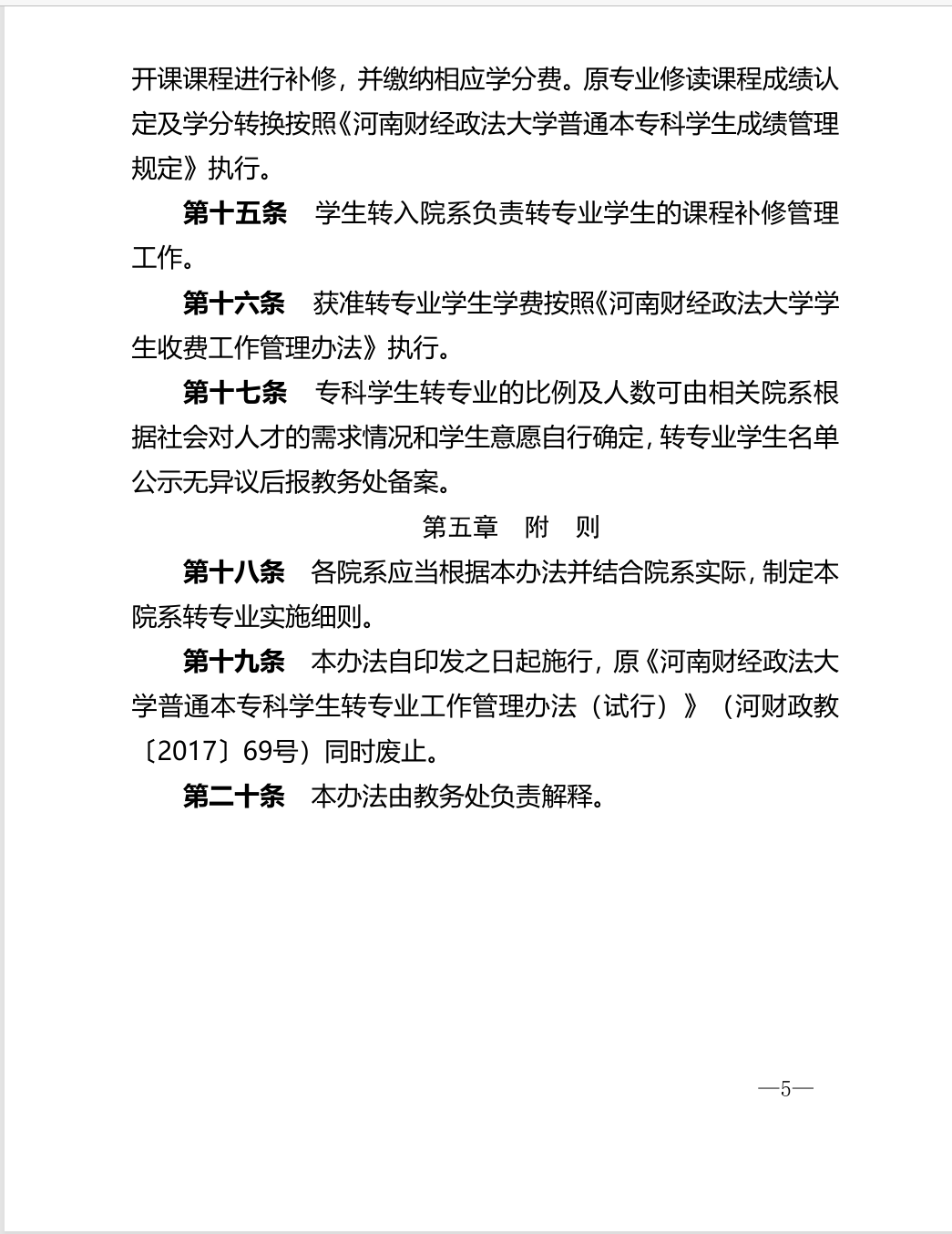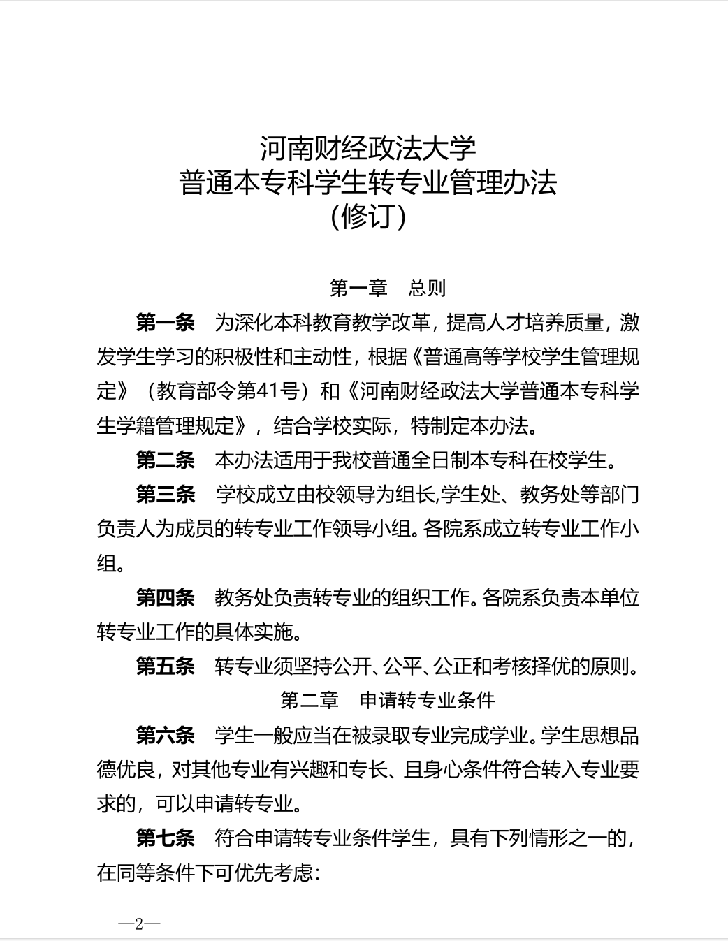 河南财经政法大学普通本专科学生转专业管理办法(修订)